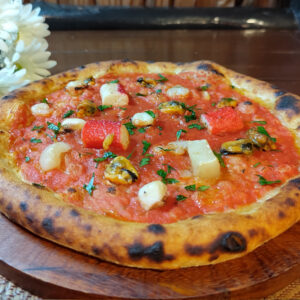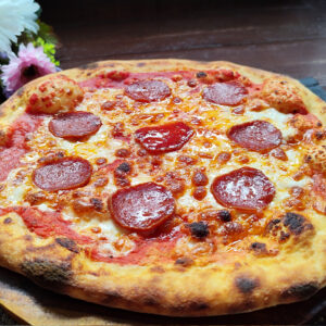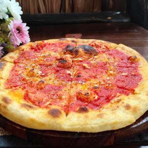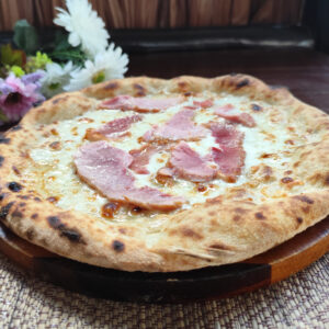 Leavened dough fermented for 48 hours with sourdough starter. Made with top-quality ingredients. Choose between classic pizza or folded calzone. You can add any extras you like. You can choose it with or without tomatoes please specify that clicking extra
