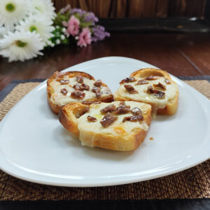 Slices of homemade bread, lightly toasted and topped with extra virgin olive oil and fresh Italian basil. The perfect base for a selection of delicious toppings.