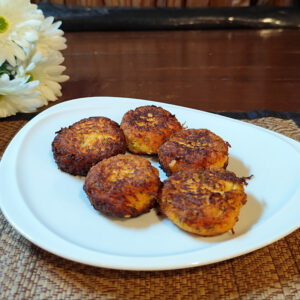 Light vegetarian meatballs made with zucchini, carrots, potatoes, and parmesan.