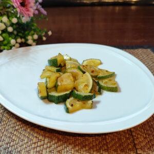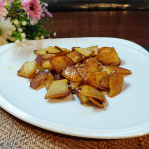 A colorful mix of potatoes, zucchini, and peppers sautéed with garlic and olive oil.