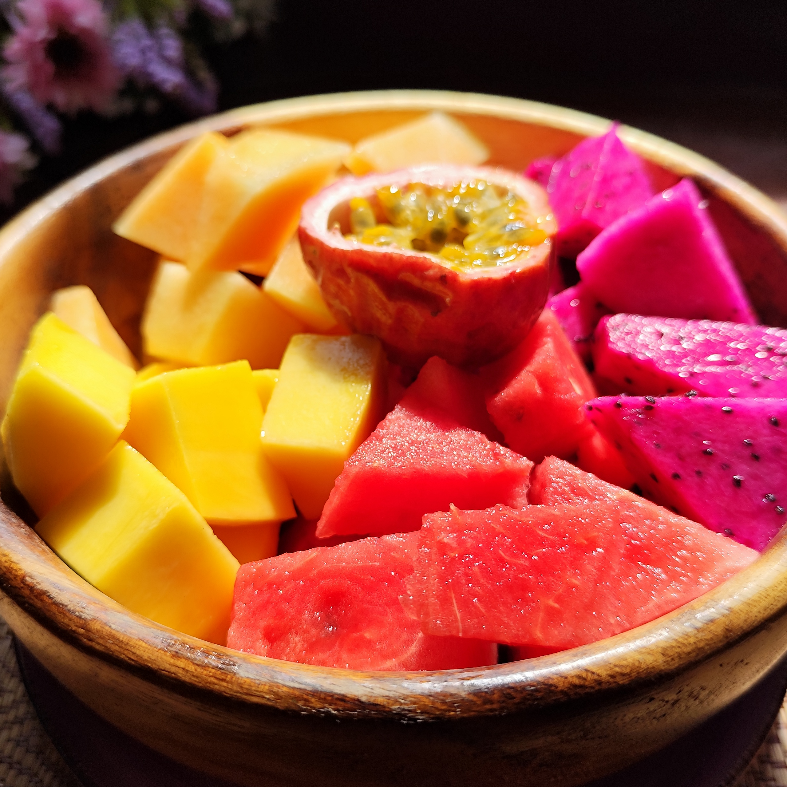 Large bowls of fresh, seasonal fruit, cut to order and served naturally. A burst of genuine flavors and vibrant summer colors.