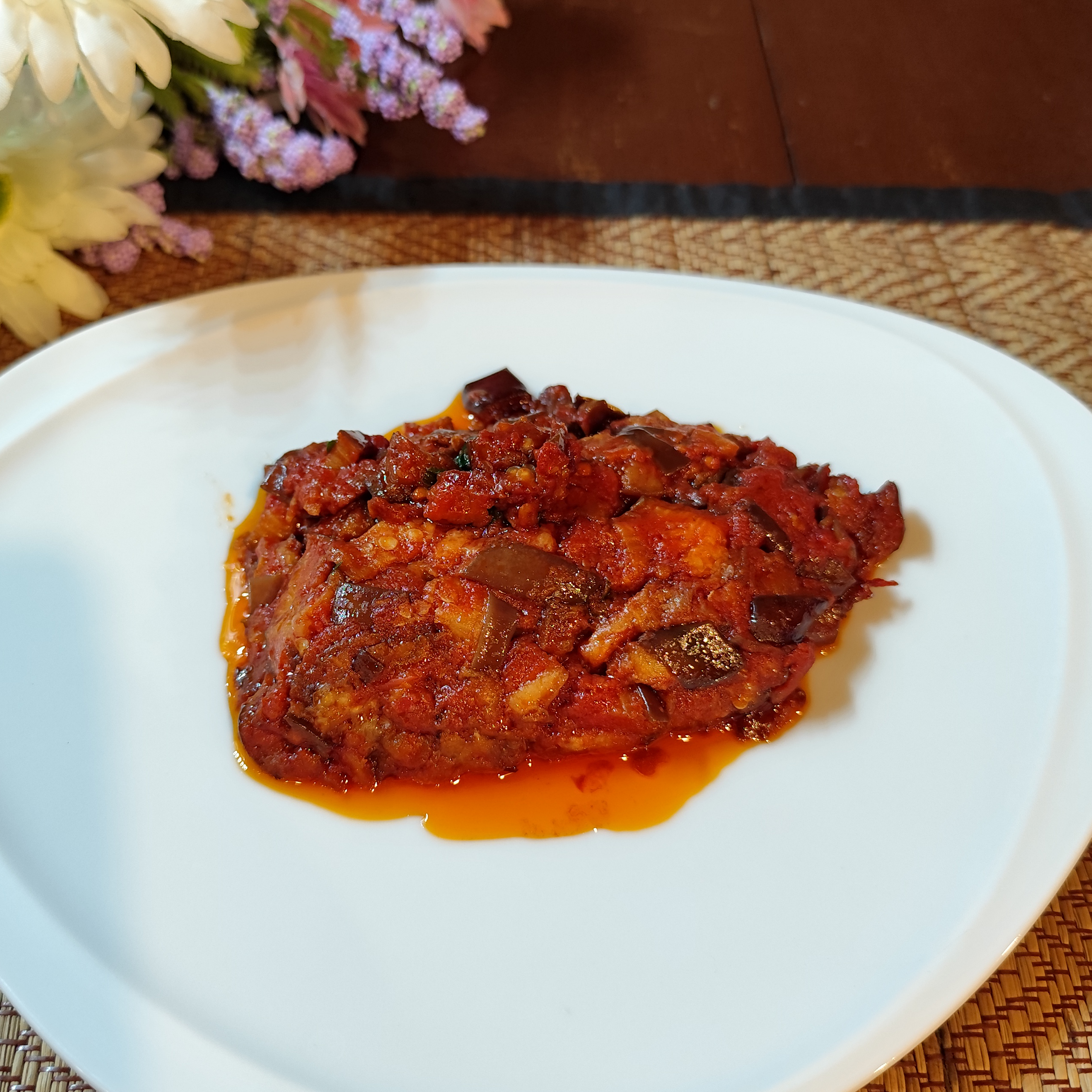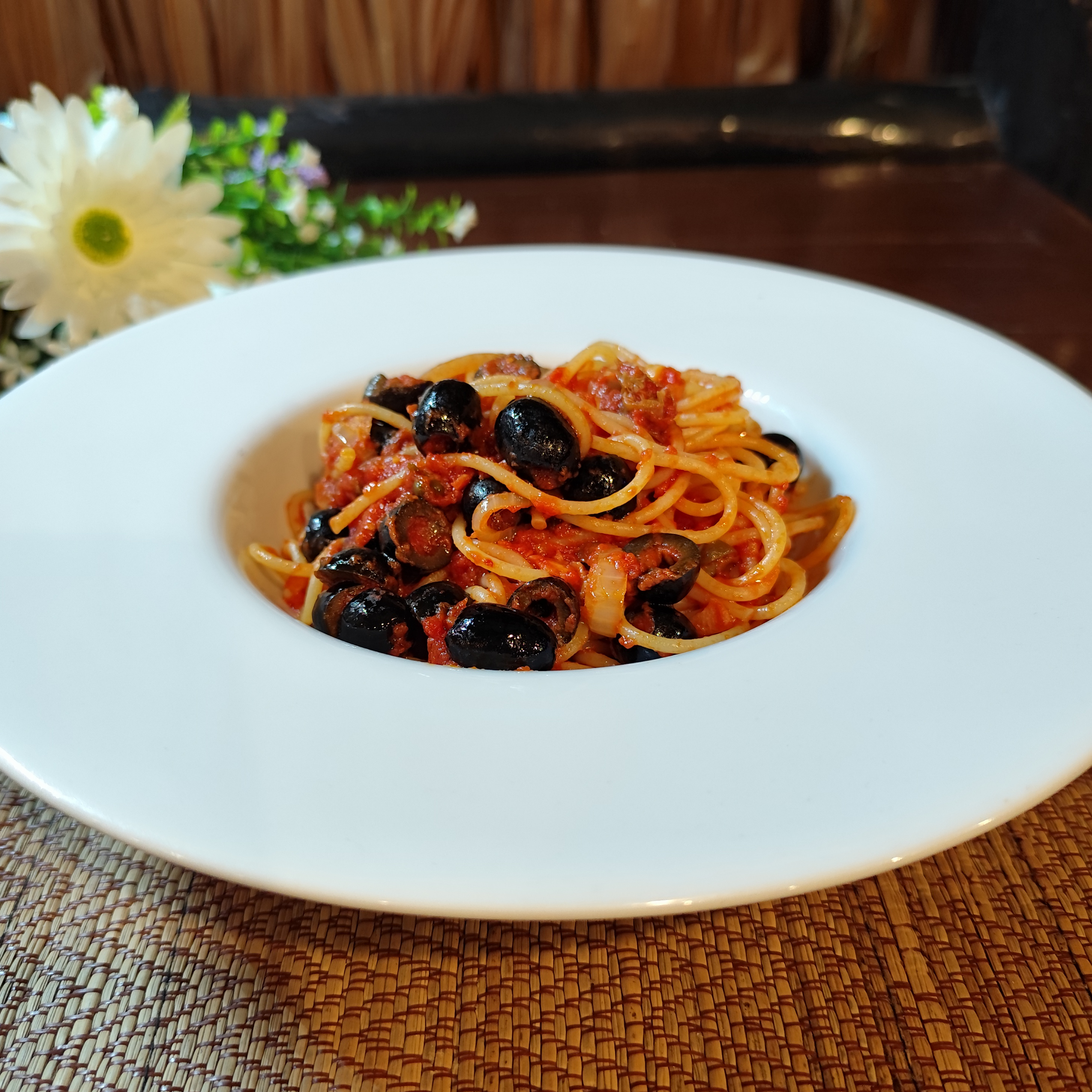 Sweet bell peppers with capers and olives, gently sautéed in garlic and olive oil.
