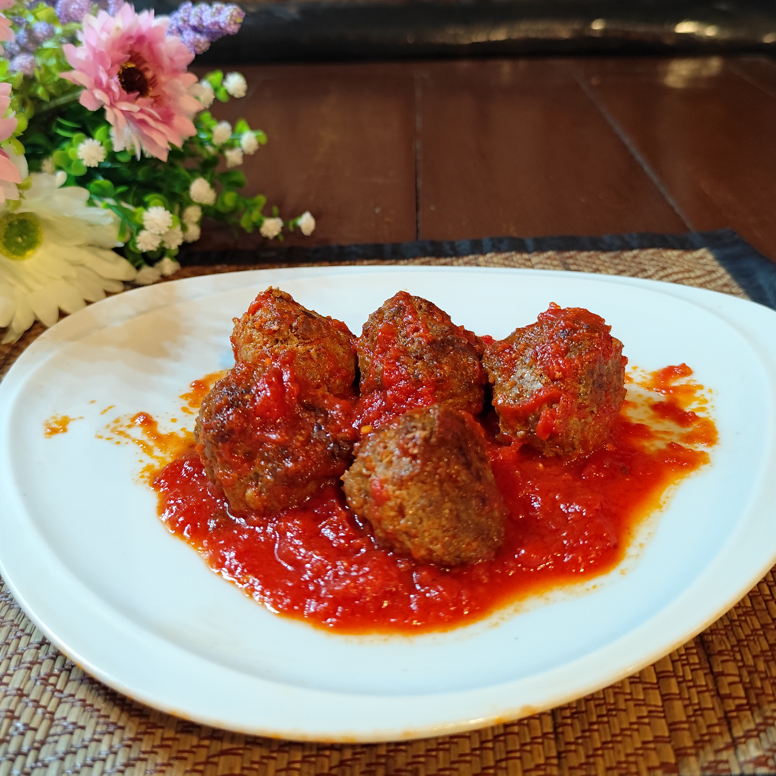 Juicy beef or lamb meatballs simmered in rich Neapolitan tomato sauce with parmesan and eggs.