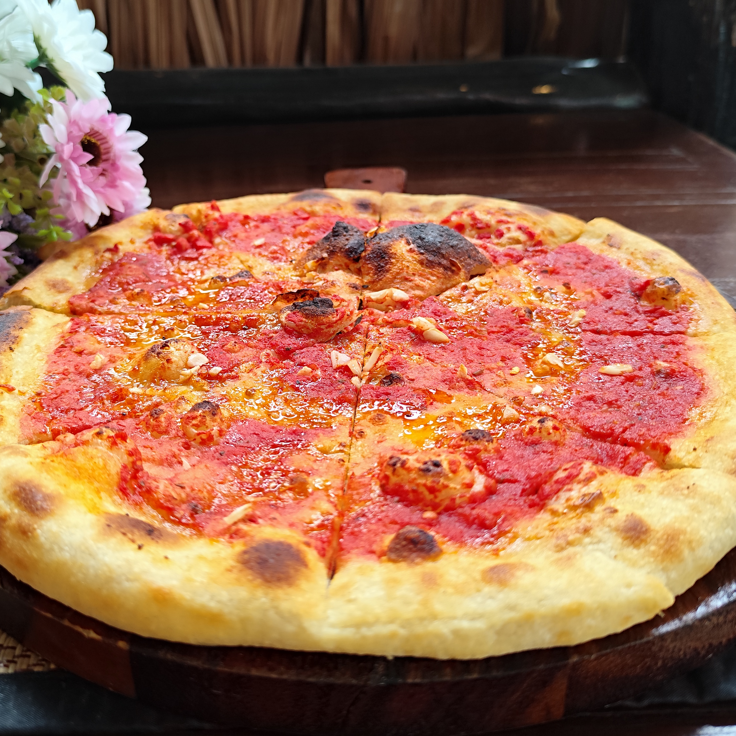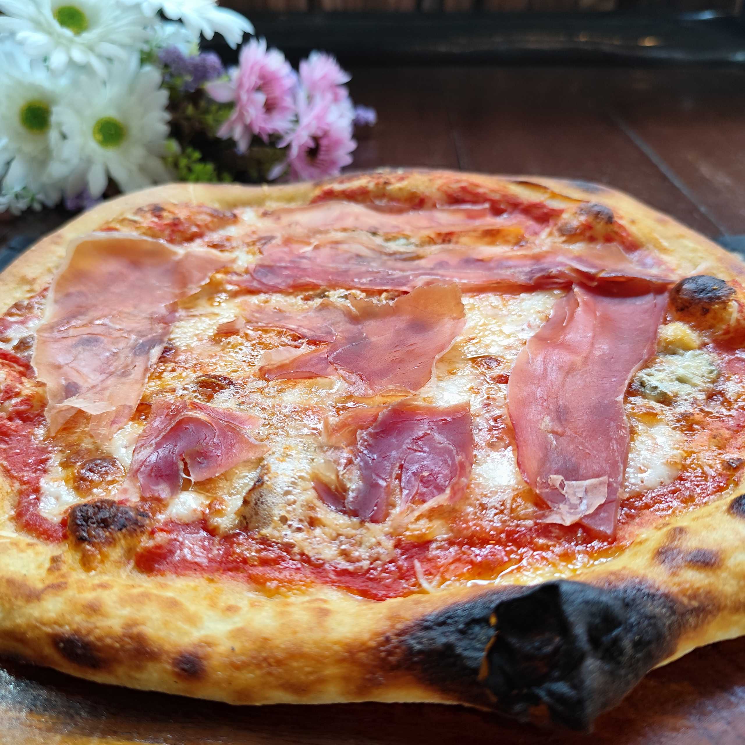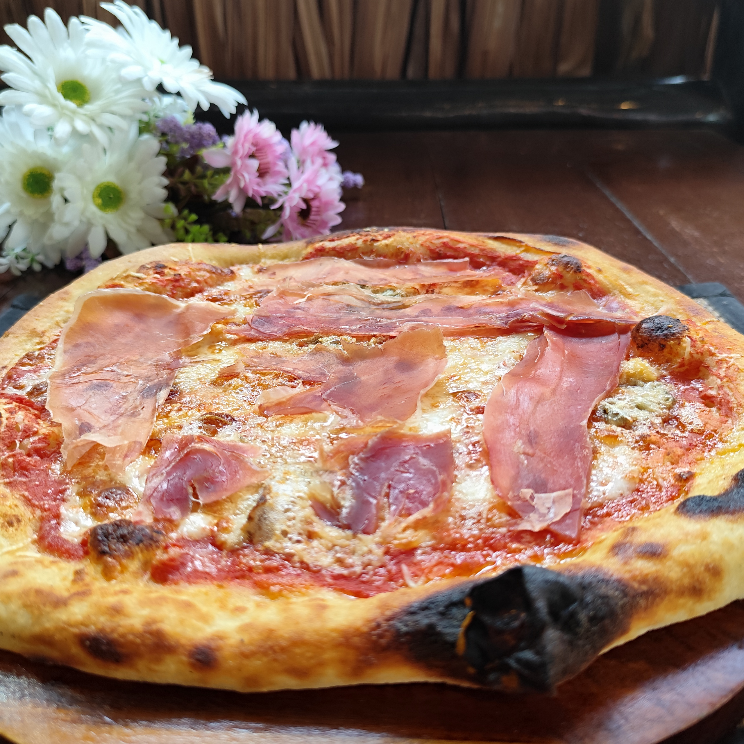 Leavened dough fermented for 48 hours with sourdough starter. Made with top-quality ingredients. Choose between classic pizza or folded calzone. You can add any extras you like. You can choose it with or without tomatoes please specify that clicking extra