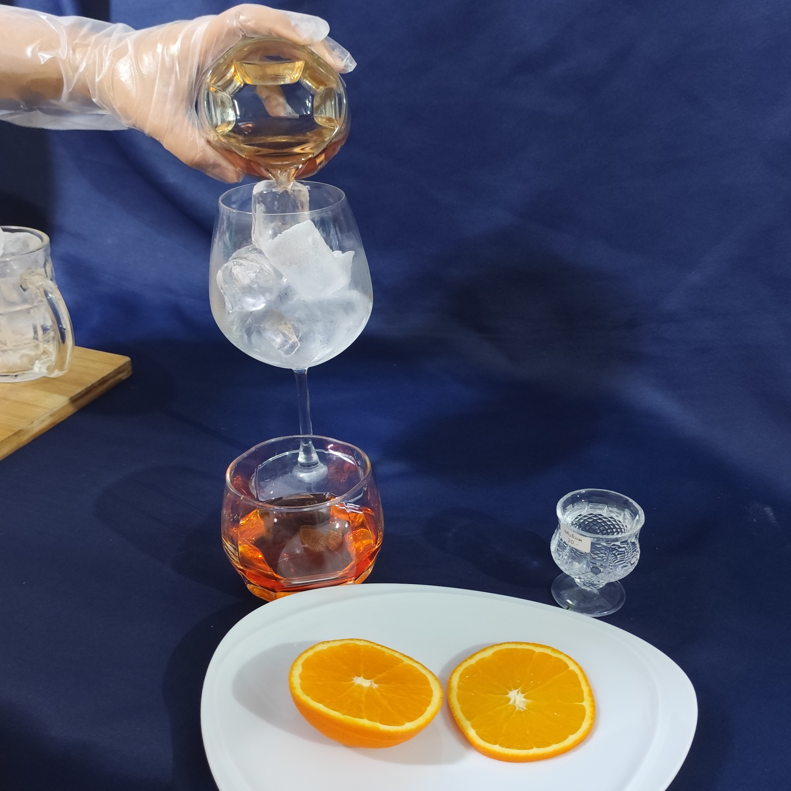 Add ice to the glass.